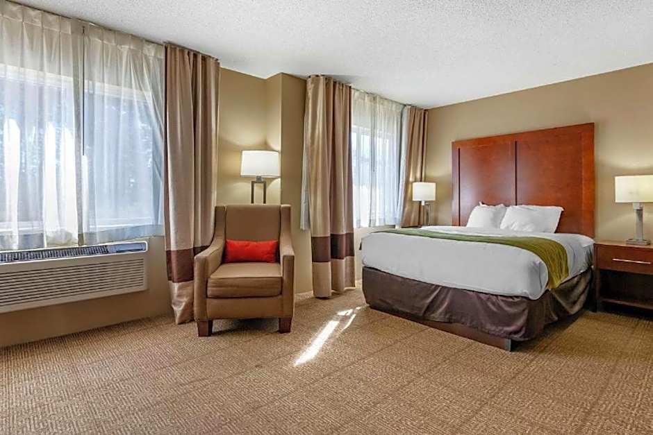 This spacious room has an ergonomic work chair, desk, microwave, and refrigerator.